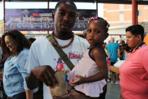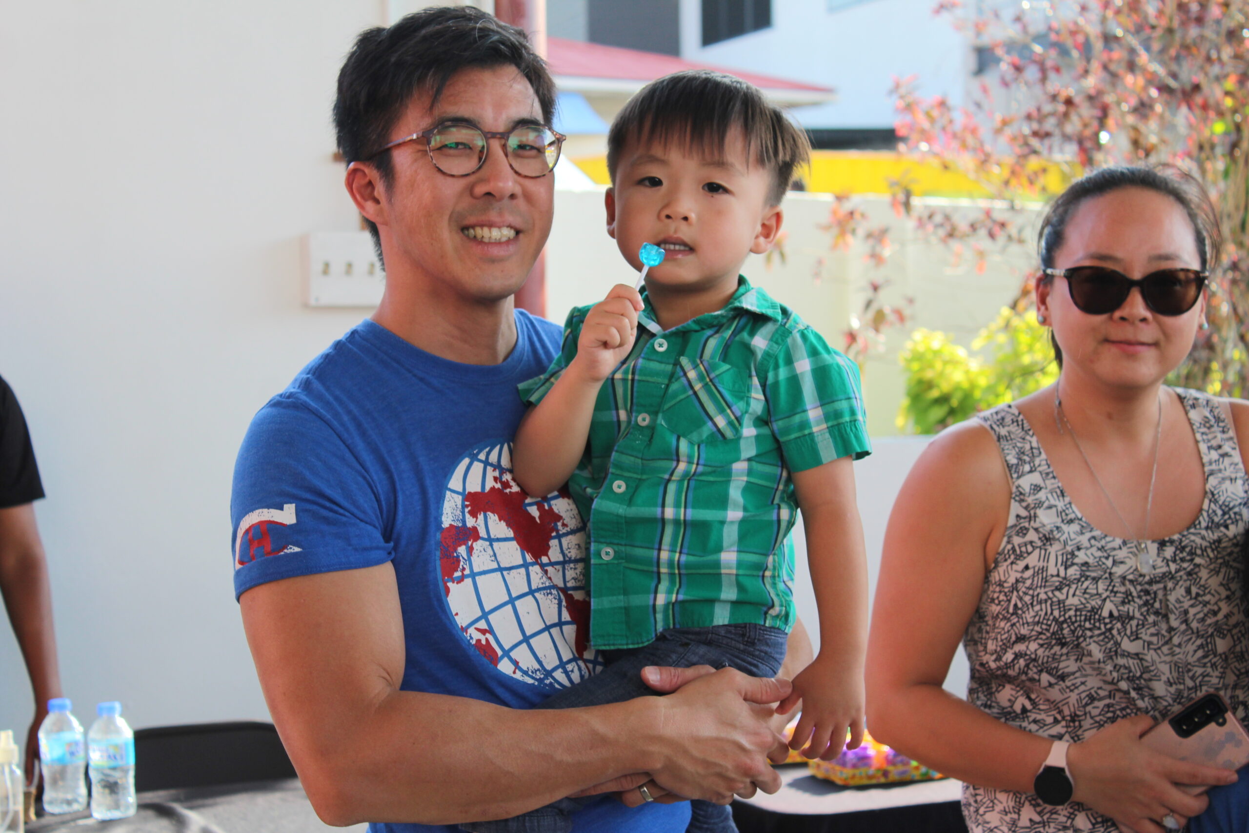 Father and son are all smiles at this event.