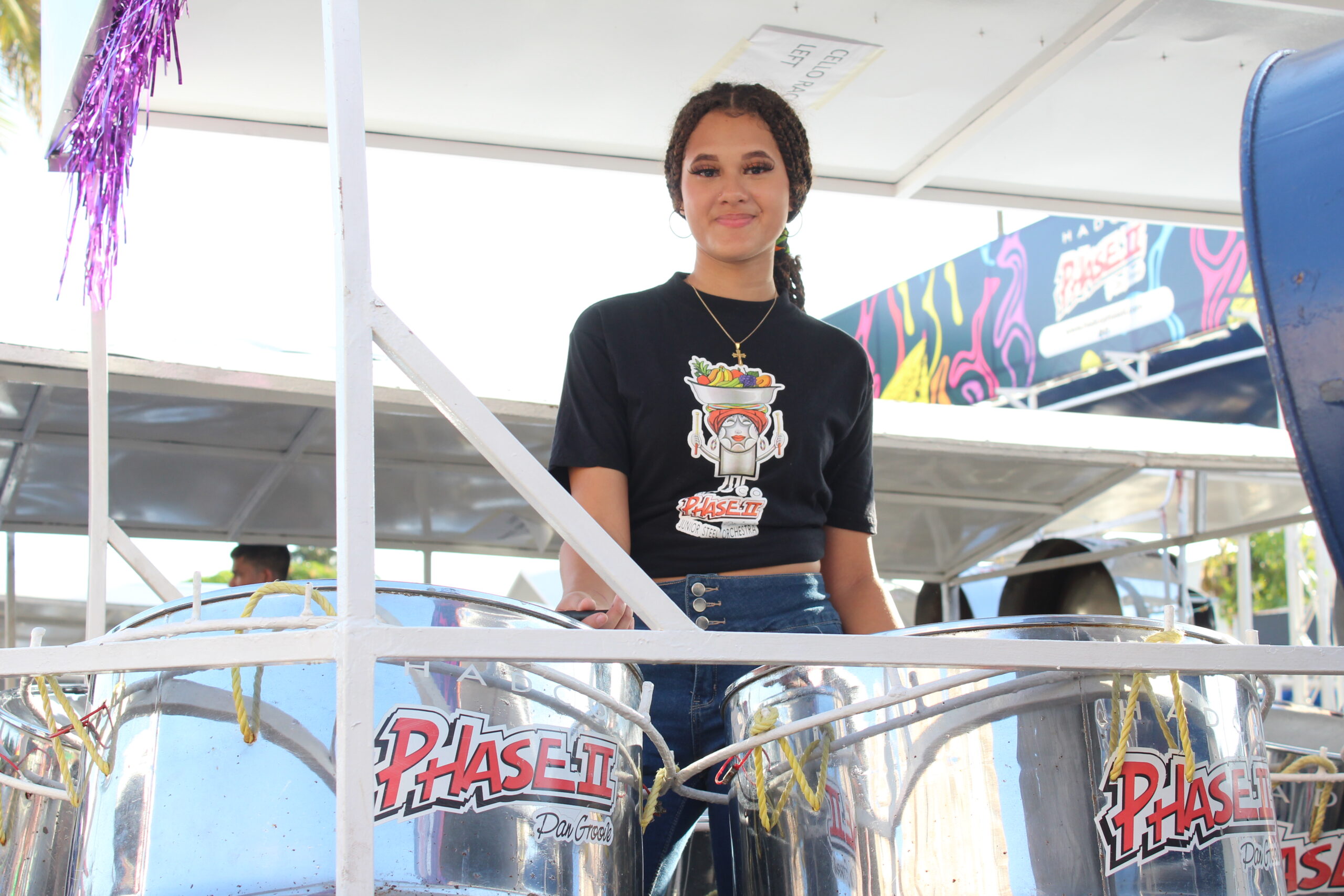 A proud youth, spreading her love for playing steelpan.