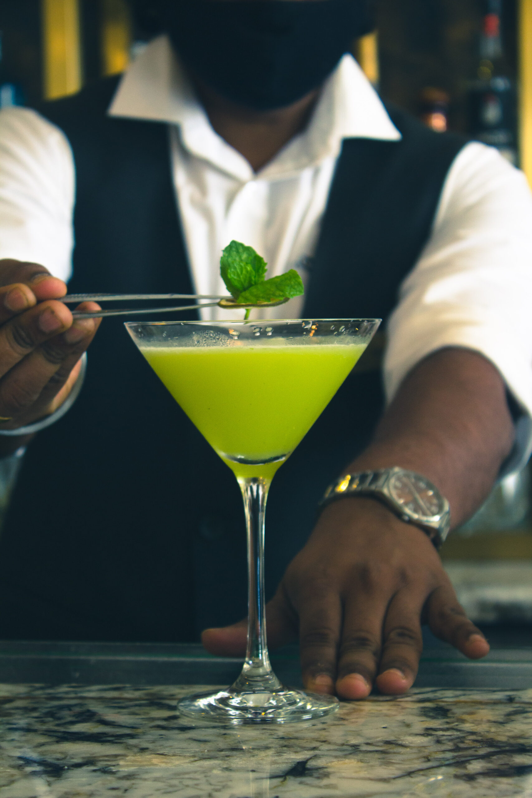 Bartender putting the final touches on a signature cocktail.